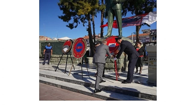 Ayvalık Kaymakamlığı, Garnizon Komutanlığı, Ayvalık Belediyesi ve Türkiye Muharip Gaziler Derneği Ayvalık Şubesi’nin çelenklerinin Atatürk anıtına sunulmasının ardından, saygı duruşu ve ardından İstiklal Marşı’nın bir ağızdan seslendirildiği törende konuşan Türkiye Muharip Gaziler Derneği Ayvalık Şubesi Başkanı Mehmet Kıranoğlu, 19 Eylül Gaziler Günü’nün aynı zamanda Türkiye Cumhuriyeti’nin kurucusu Gazi Mustafa Kemal Atatürk’e Mareşallik rütbesinin verildiği gün olduğunu söyledi.